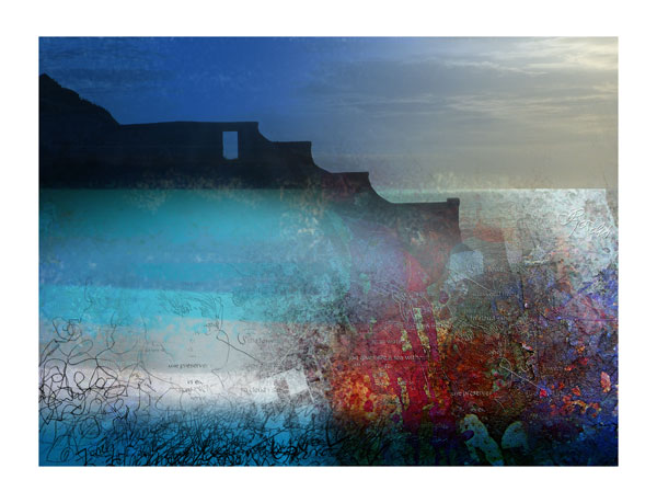 Pat Hodson has used words and fragments of words to visualise a limitless sea - a shifting blue phosphorescent haze through which a single poem drifts. The poet, Liz Cashdan imagines 'Sea' murmuring , talking to Shakespeare, accusing him of causing chaos . 35 page Artists book, Perfect bound |