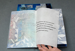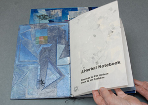 While the second book evolved from 'Herbal Notebook 1", in Book 2 substantial changes were made to the image pages. The structure of the book remains similar to book 1, with chain stitched open spine. A box is included. The book covers and box are of encaustic collage and incorporate selected print fragments from the body of the book.