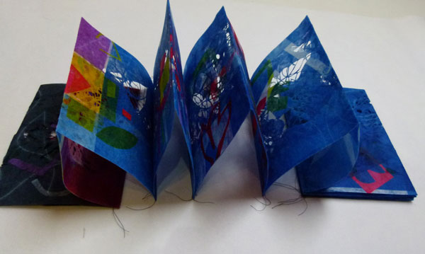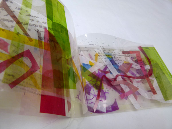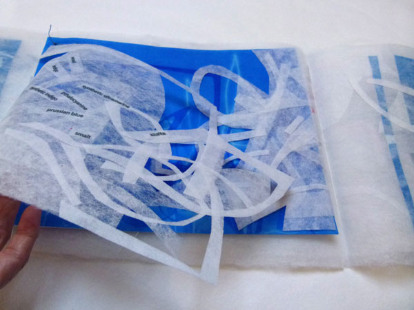 medium Heat fused Polyester with Zeelon - hand cut - transfer printed hand cut dyed pages.
